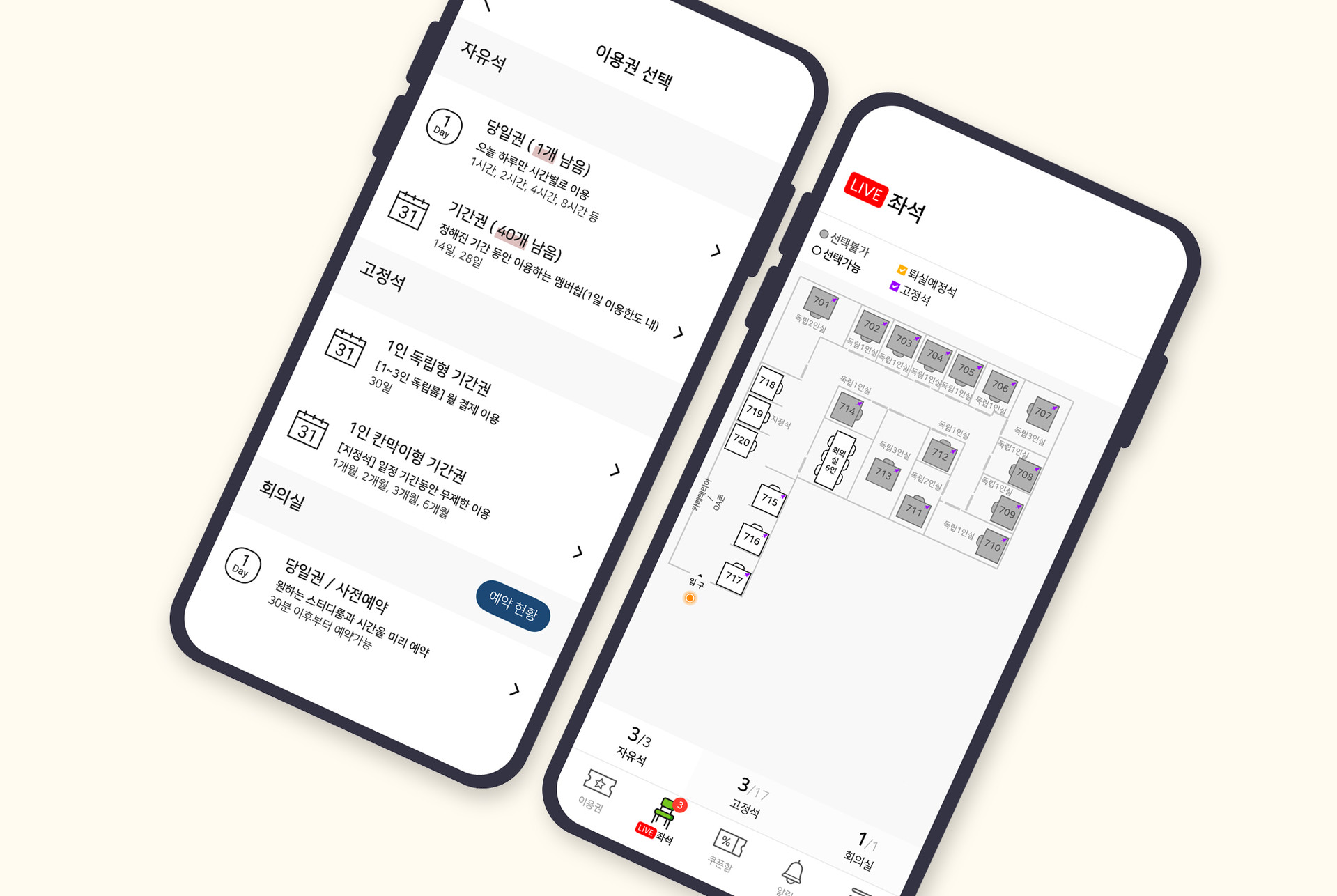 다양한 고객층을 유도합니다. 고정 월 고객뿐 아니라 단기 이용 고객, 재택근무자, 시험 준비생, 프리랜서까지 폭넓은 수요를 흡수합니다.
